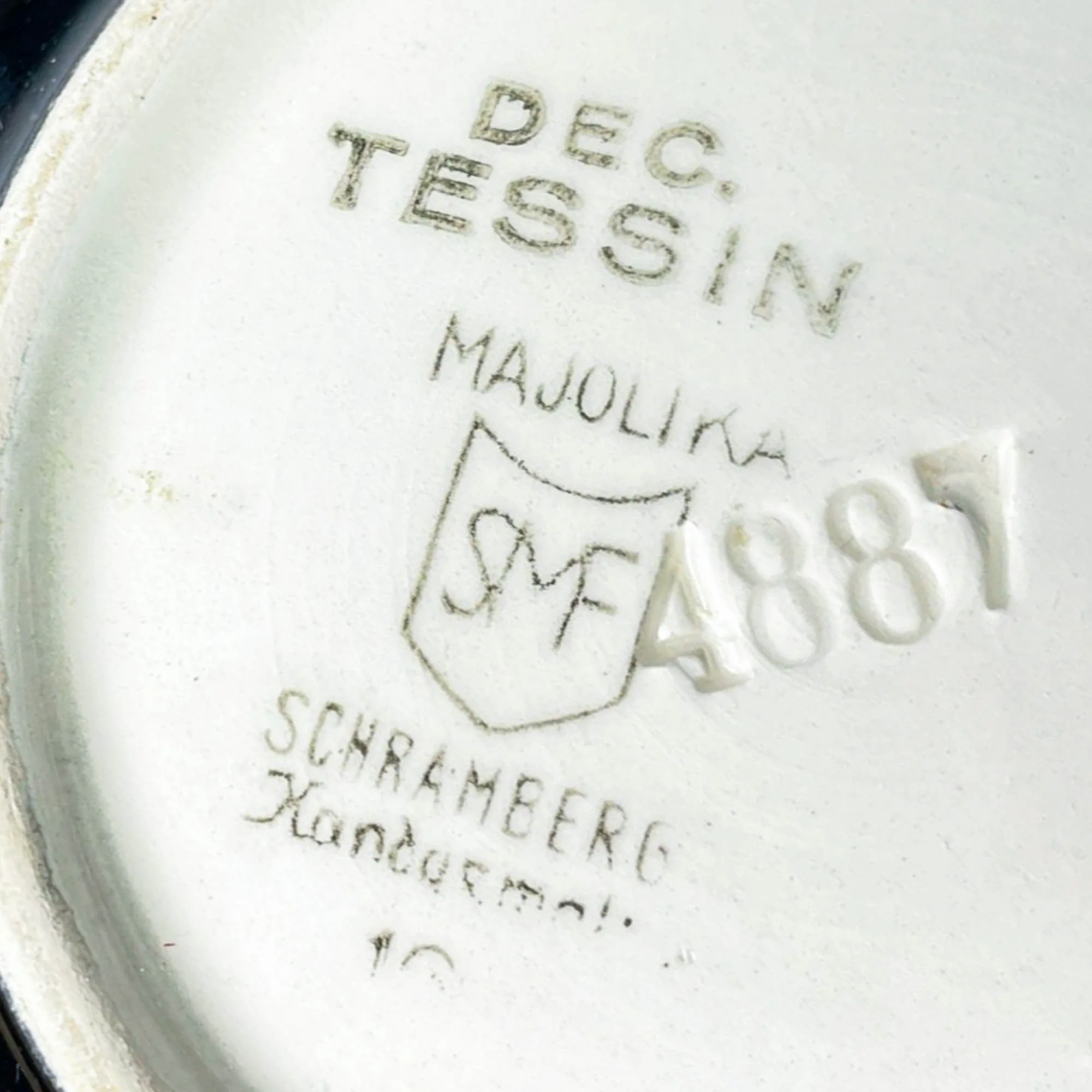 Some of her designs: Fiuma, Gobelin - Elfie Stadler (1930 – 1968 ): Elfriede “Elfi” Stadler stands as one of the most influential ceramic designers of the post-war era in Germany, despite her relatively short career. Her work at Schramberger Majolika-Fabrik (SMF) during a crucial decade of mid-century design has left a lasting impact on German ceramics history and continues to captivate collectors today.