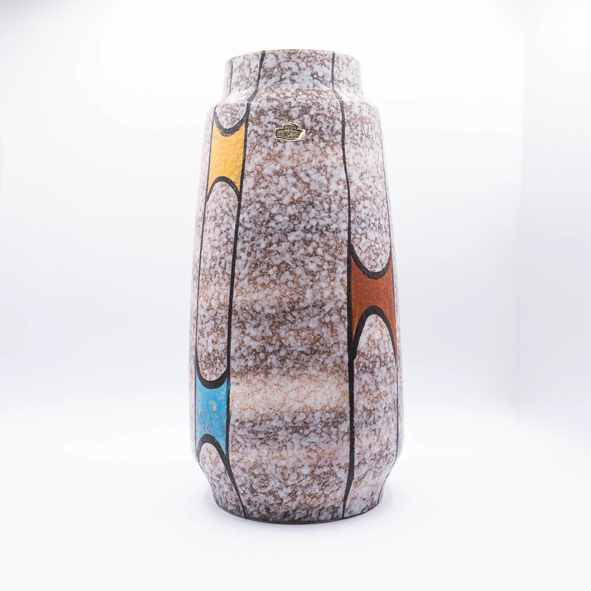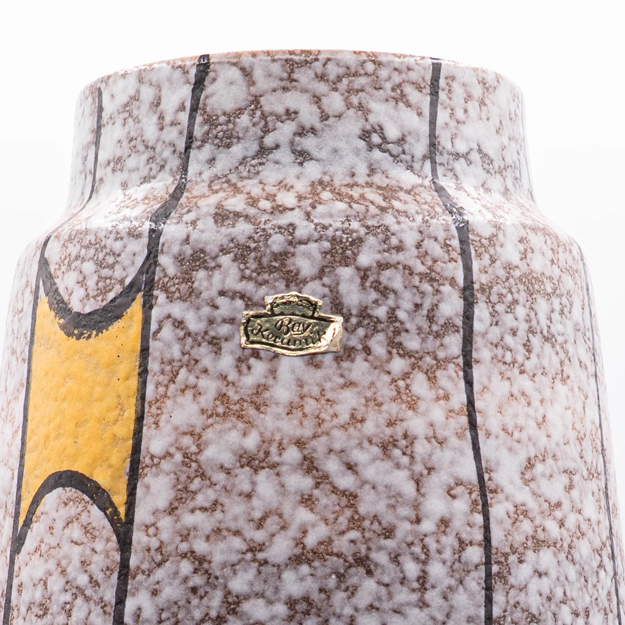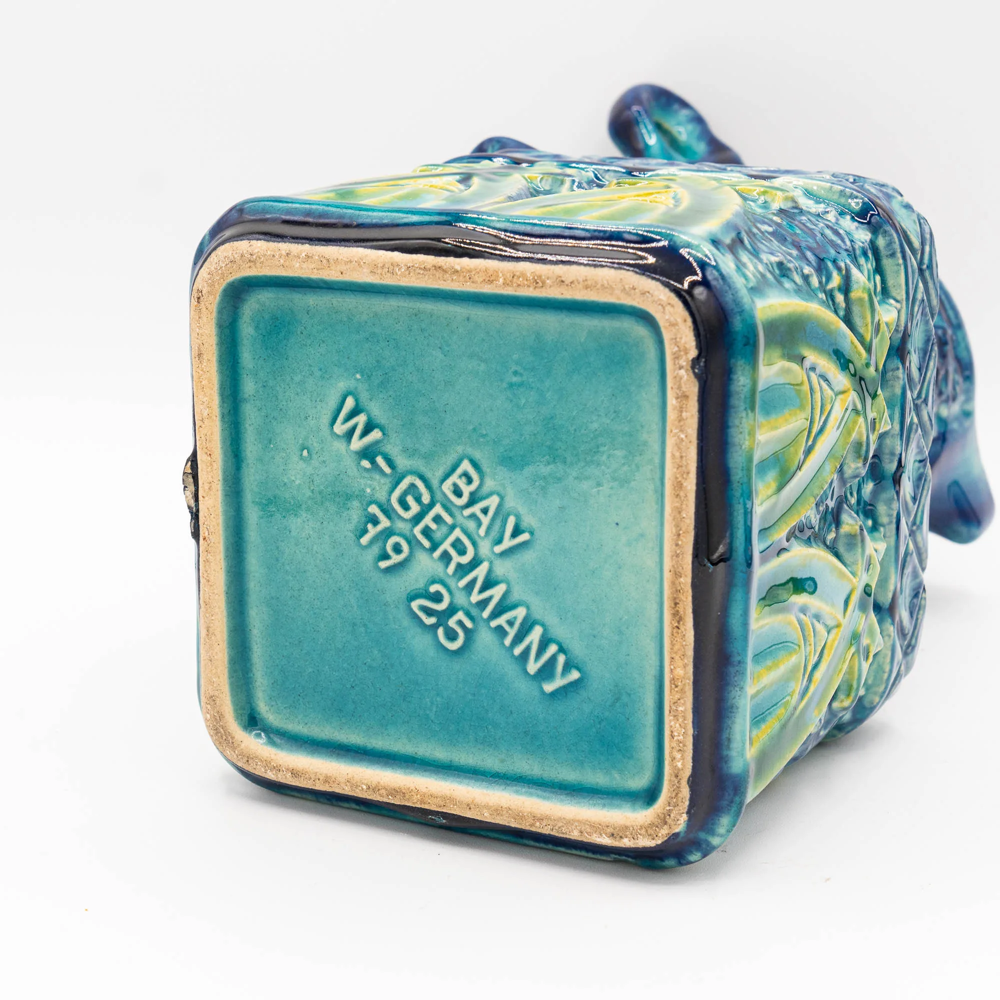 Bay Keramik used white clay for it’s production. The vases usually are clearly marked on the base with a moulded identification: two or three digits for the form, followed by a dash and the height in cm’s. Many vases also still have a Bay sticker, which makes identification very easy.
